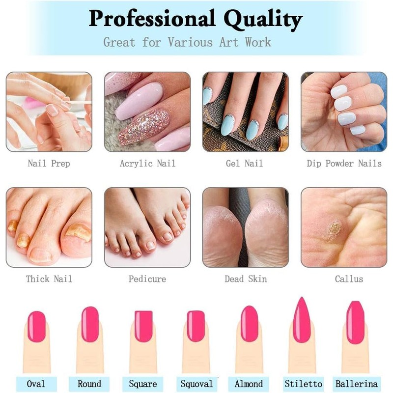 - 【Multifunctional】Electric nail drill bits can be used to polishing gel acrylic nails, remove dead skin, barbs, pretreatment, sharpening, grinding, carving, nail removal, etc., an ideal tool for manicurist or beginner.
