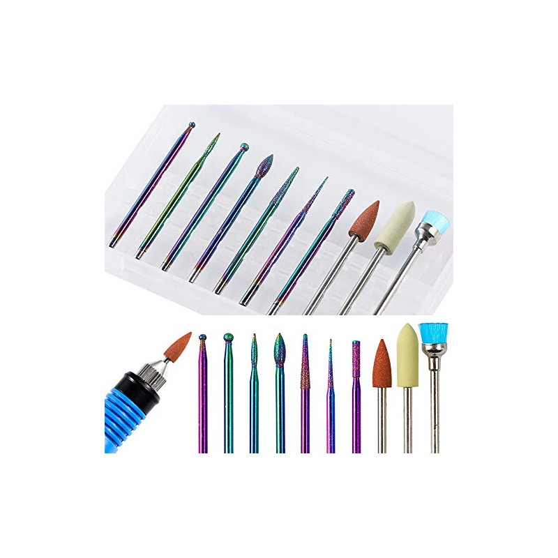 Nail Drill Bits Set,10PCS Diamond Drill Bits Tungsten Steel Nail File Bits Cu...