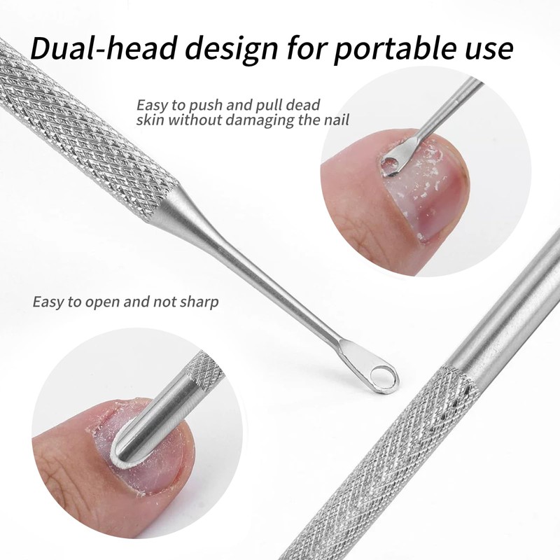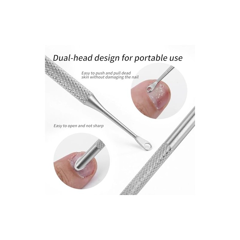 - Premium stainless steel tool Metal cuticle pusher with sharp edges for precise dead skin removal and gel residue cleanup. Built to last for long-term nail care routines.