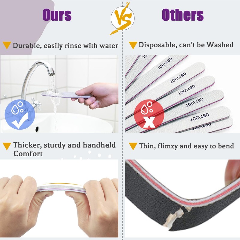 - 💕 Double-sided emery board: This nail file is wear-resistant, does not bend and remains abrasive when filing. Double-sided design can be used for a long time. These nail files are washable and reusable, which can be washed after filing.