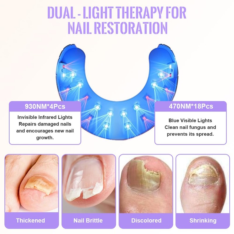 1. Two light waves: nail fungus laser for home uses a combination of blue and infrared light to repair damaged, brittle and yellowed nails.