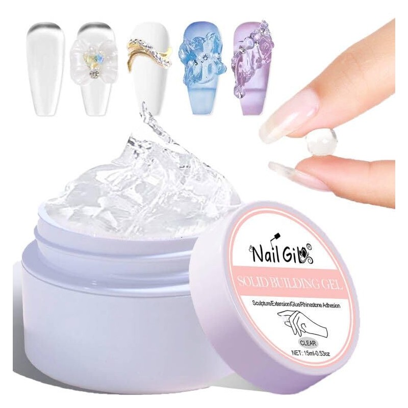 NAIL GIL NAILGIL Solid Builder Gel For Nails,3D Gel Nail Art Sculpture Non-Sticky Hand Extension Gel Sock Off UV LED Salon DIY at Home-15g/0.53oz,Clear
