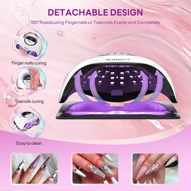 【Perfect Gel Nail Polish UV Light】Professional uv light for gel nails (not suitable for quick-dry nail polish). Such as base coat, top coat, color gel, hard gels, builder, acrylic, sculpture gel, gem glue and more. For more sticky or thick nail polishes than regular gel, high power gel uv led nail lamp can still dry each layer of gel. Our nail uv lamp having enough space to place hands or feet,which can dry 5 fingernails or toenails at the same time!