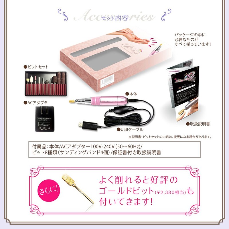 • High performance specifications with a maximum speed of 22,000 RPM. You can easily and quickly file heavy labor filing. There are 8 types of attachments, and you can also use the nail lab's "Lab Machine" attachments