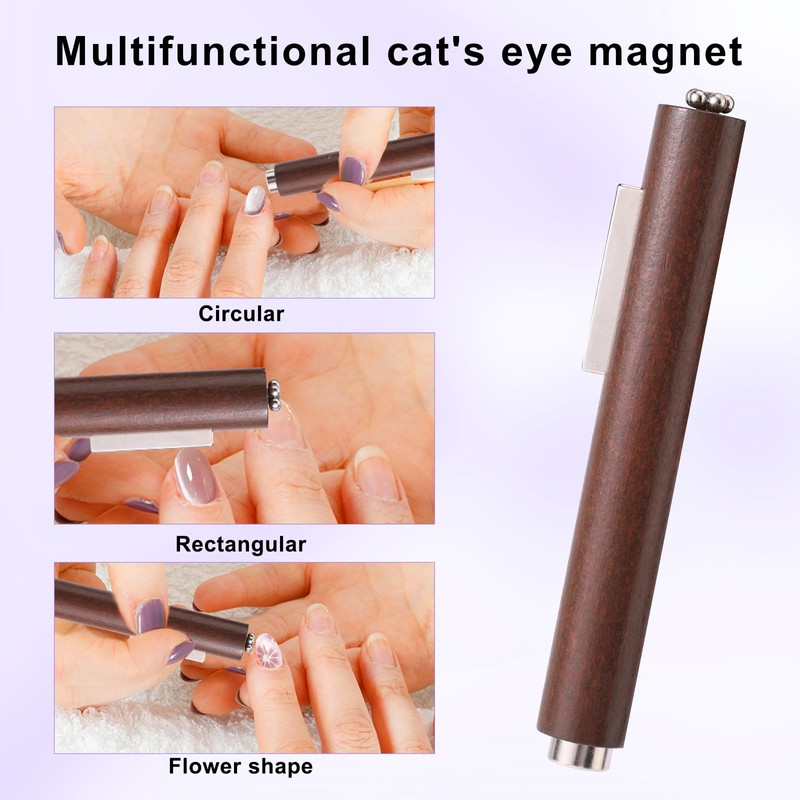- 3-in-1 Multifunctional Design: The main magnet tool features three magnetic heads — flower-shaped, rectangular, and round — allowing you to easily craft popular cat eye styles like wide-angle shimmer, black hole effect, French tips, and petal patterns.