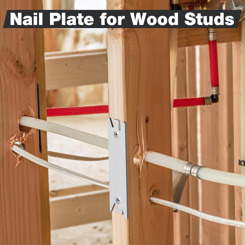 - 【Function】The Nail Plate is designed to protect wires, cables, and plastic plumbing as they pass through wooden posts, ensuring safe installation. It helps prevent electrical fires caused by accidental drilling or nailing