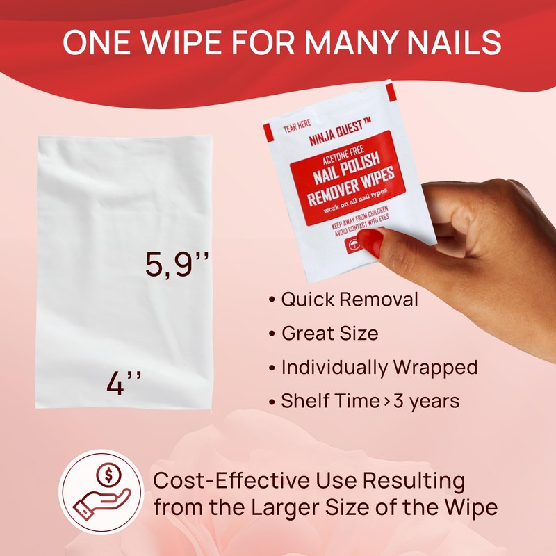 Nail Polish Remover Pads - 100% Non-Acetone - 50 Pack Bulk Set - Individually Wrapped - Quick Nail Polish Remover Wipes - Fingernail Travel Kit to Clear Nail Polish for Home & Professional Removal