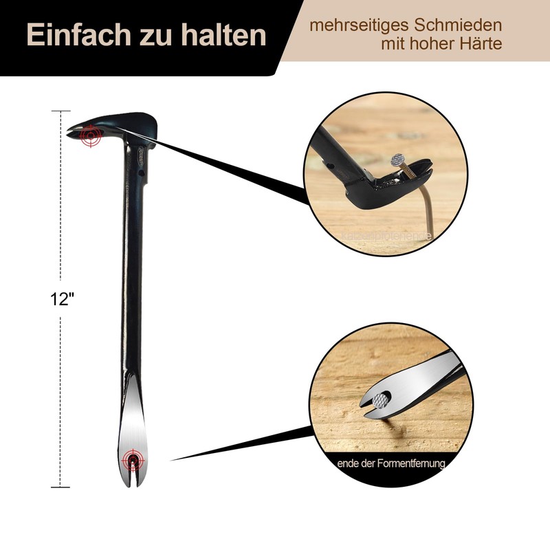 Nail puller, 12 inch crowbar, mini crowbar, cat claw nail remover, crowbar set, for kitchen renovation, break open skirting board, multi-sided forged steel, carpentry tool JOVANT