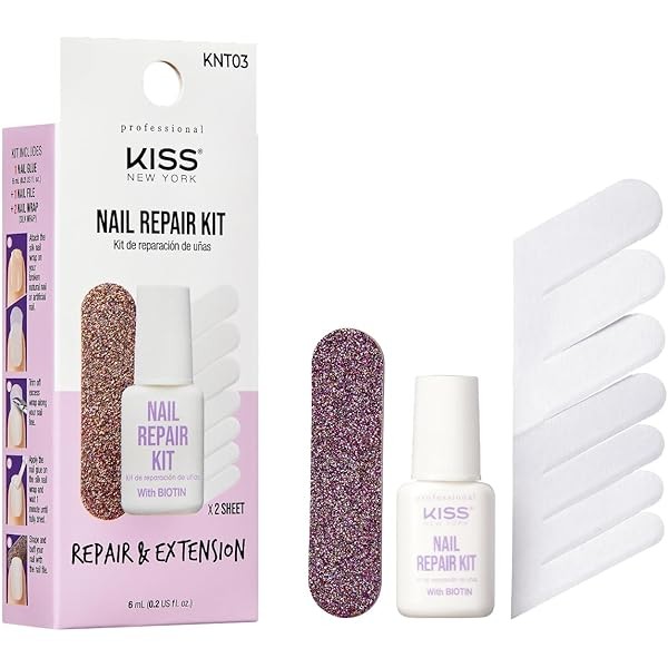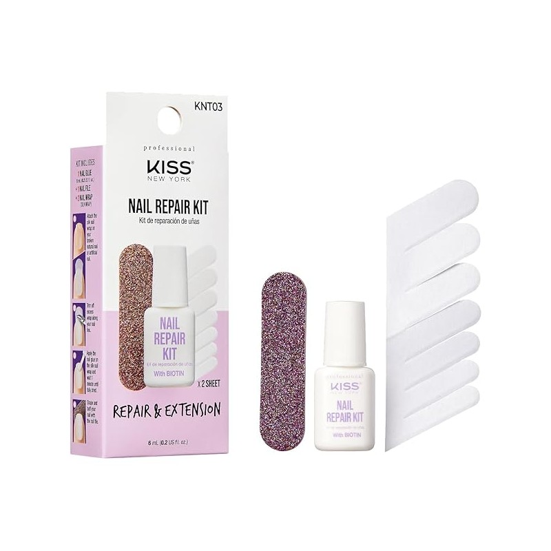 Nail Repair Kit for Damage, Broken, Cracked and Weak Nails - Biotin Infused Glue, File, and 2 Wraps - Made in Korea