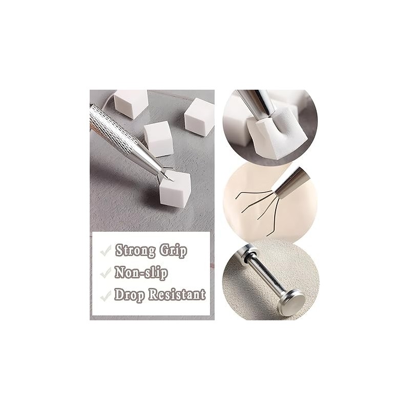 - 【4 Claws Grabber】The equipped metal grabber tool can easily grab the sponge to prevent nails from being stained when designing nail art. The gripping range and tightness can be adjusted by adjusting the pressing force.
