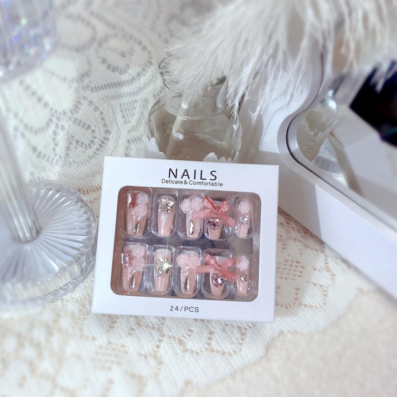 - Elegant glossy nails: The bow and pearl make the nail decoration sparkling, which makes it attractive and luxurious. A gorgeous nail art that will catch everyone's eyes. Long nail tip that cleans your fingertips and enhances your feminine charm casually; Popular nail tips: Suitable for important occasions such as New Year's parties, home use, weddings, after-parties, coming-of-age ceremonies, receptions, and parties