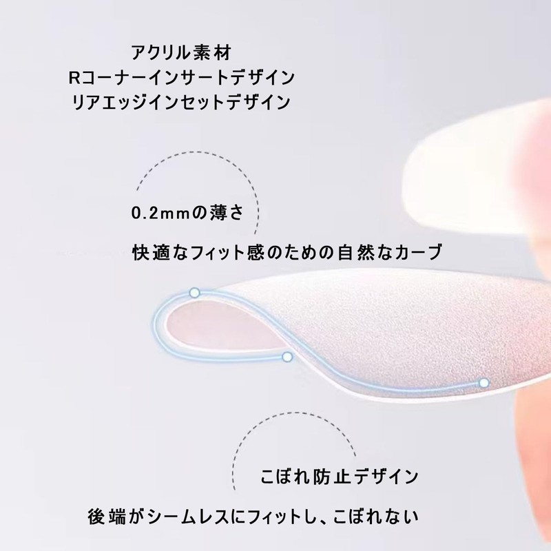- The chip itself is thin, so it fits just like your nail. Thin back and thick front edge. The entire nail tip can be easily fitted to your nails, so you don't feel uncomfortable. When reinforced, it is firmly fixed, so it is quite comfortable to hold