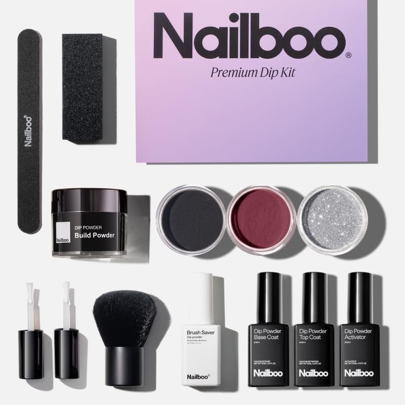 Nailboo Dip Powder Nail Kit Bundle - 3 Highly Pigmented Dip Powders, Full Application System, Strengthens Natural Nails, No UV Light Needed: Dark Dreams, Gala Gal, Wine Time 0.8oz
