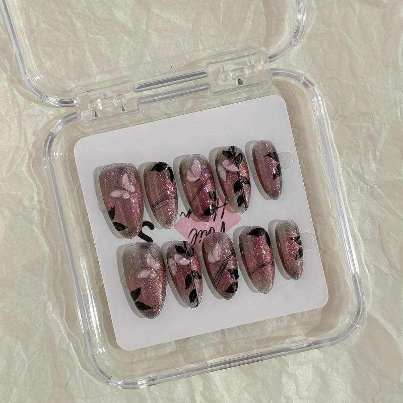 NailHaven|almond shape collection| short and medium length 25mm almond shape press-on nails |cute nails | acrylic press-on| fake nails |Handmade | high quality Press on nails 10 pcs|reusable nails|nail art|nail charm|handmade press ons:_1_L