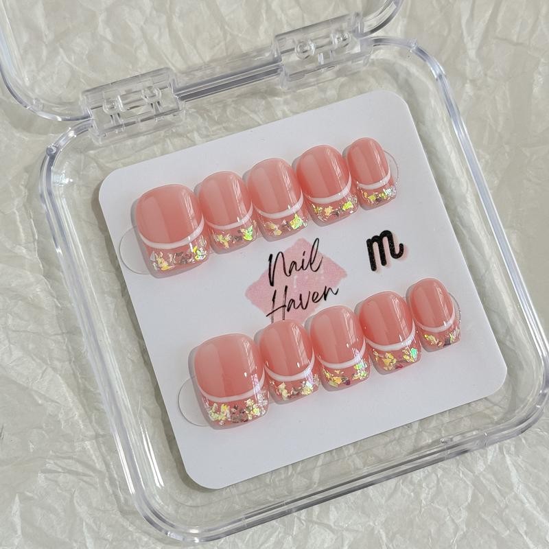 NailHaven| French Tip Collection| Press-On Nails - 10 Pcs Handmade Acrylic Nails with Cute Designs, Short Nails, and Nail Art, High Quality, Reusable:_FT-56_small