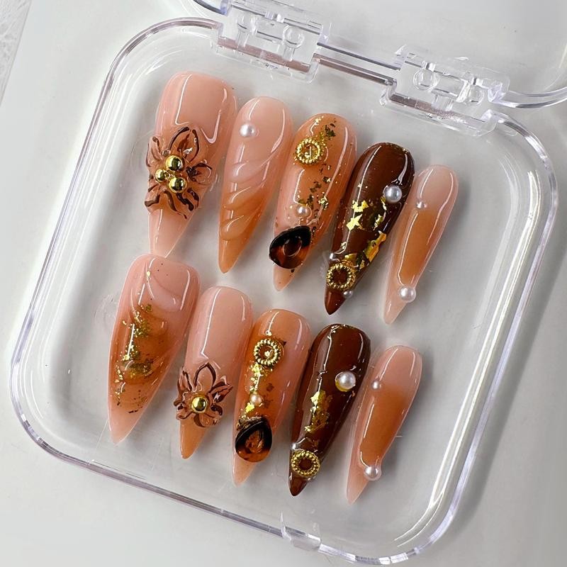 NailPhoria MID-FALL Collections 10PCS Handmade Press On Nails REUSABLE 3D GEL / Acrylic FALL 2024 - Design: Jungle Blush, Nail Bed Size: S