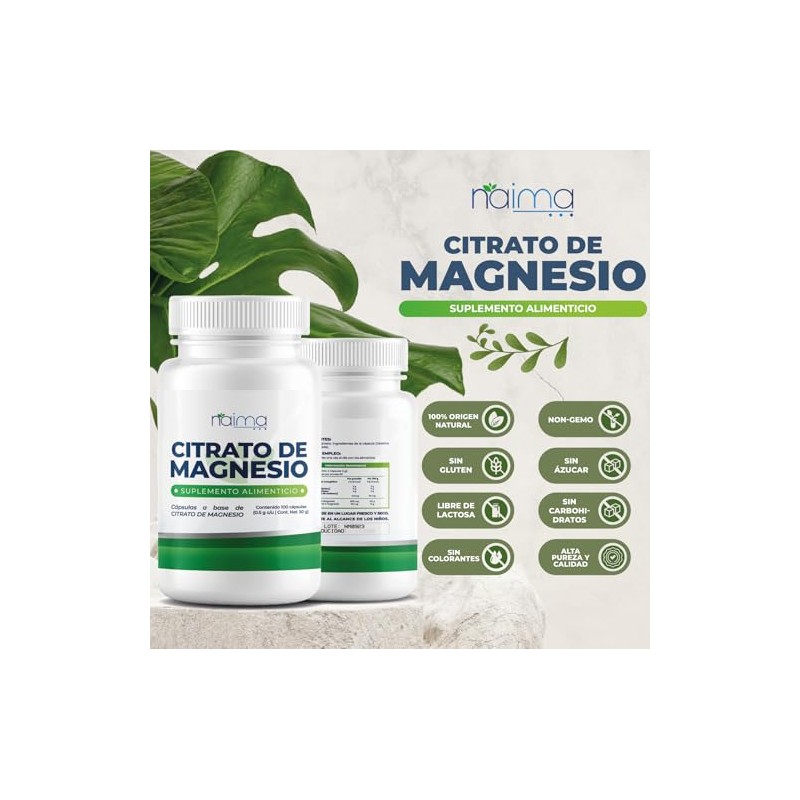 NAIMA Citrato de Magnesio 500 mg  100 Cpsulas  Pure Magnesium Citrate  Suplemento Puro y de Alta Absorcin  Ingredientes Naturales  Sin Aditivos...