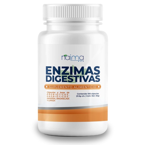 NAIMA Enzimas Digestivas con Probióticos y Prebióticos de Amplio Espectro, 100 Cápsulas | Suplemento Alimenticio 100% Puro y Natural, Sin Aditivos | Apoyo Digestivo Completo, Absorción de Nutrientes