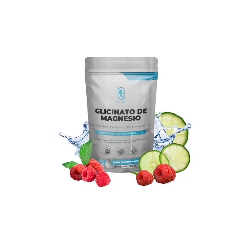 NAIMA Glicinato de Magnesio 300 g, Sabor Frambuesa-Limn Suplemento en Polvo 100 Puro con Glicinato de Magnesio, Inulina de Agave, Colgeno...