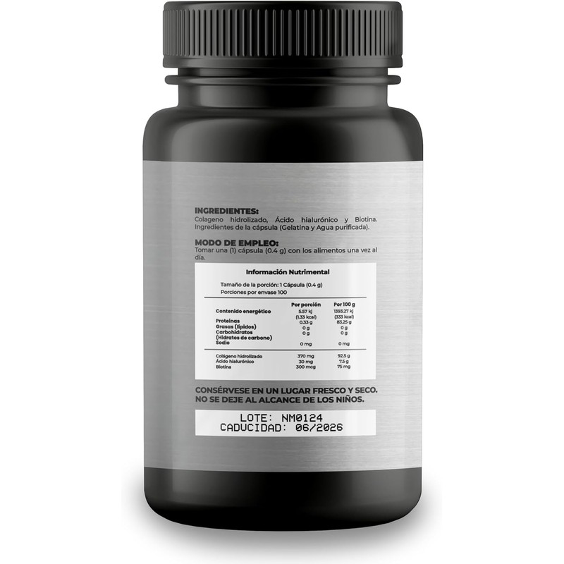 - 100% pure hydrolyzed collagen with hyaluronic acid and biotin.