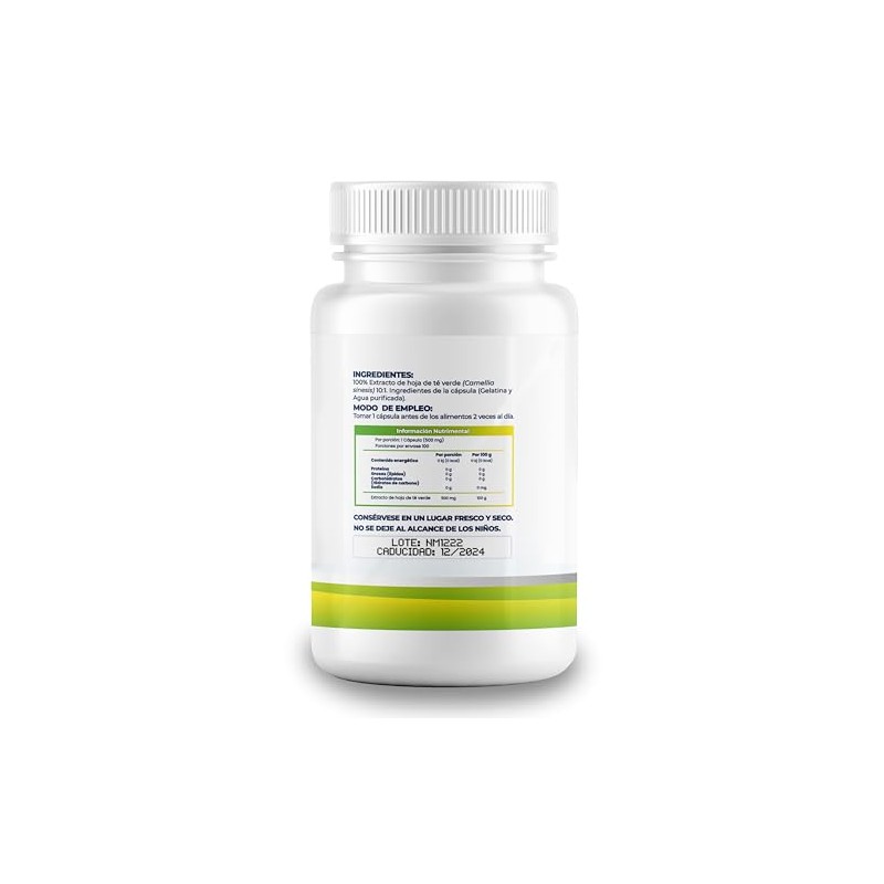 NAIMA T Verde 500 mg por Cpsula 100 Cpsulas Extracto 100 Puro y Natural Sin Aditivos ni Gluten Metabolismo, Vitalidad y Proteccin Antioxidante...