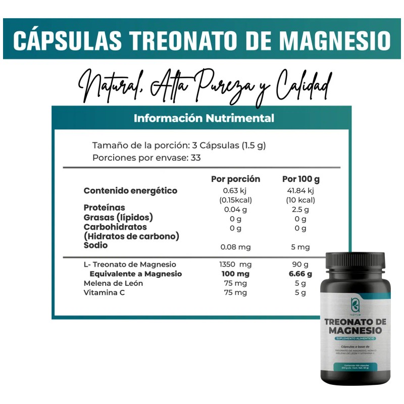 - Treonato de magnesio como suplemento principal para la función cognitiva.