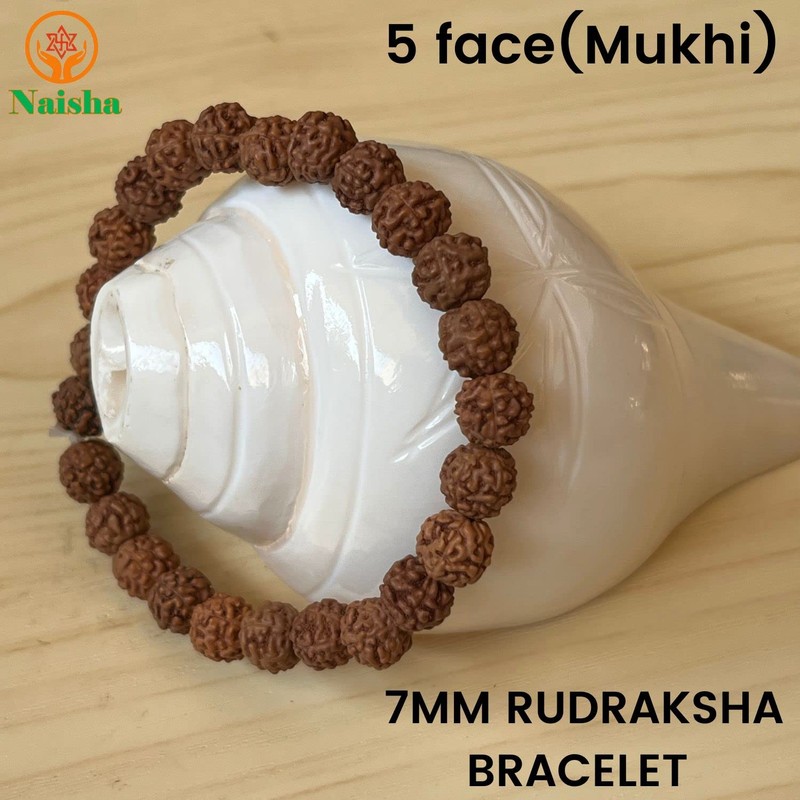 NAISHA Rudraksha Stretchable Bracelet Rudraksha 5 mukhi Paanch mukhi 5 face Bracelet for Meditation Yoga 7 mm Size (Pack of 2)…
