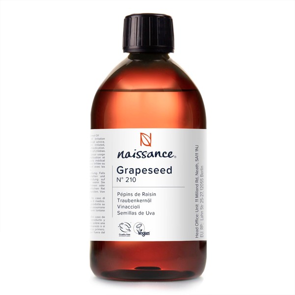Naissance Grapeseed Oil (No. 210) 450ml - Natural Moisturiser and Conditioner - Ideal for Hair, Skin, Massage, Face, Beard and Aromatherapy