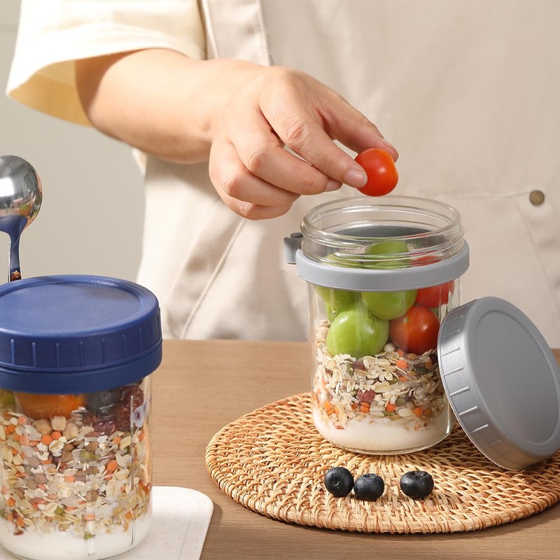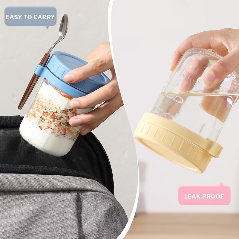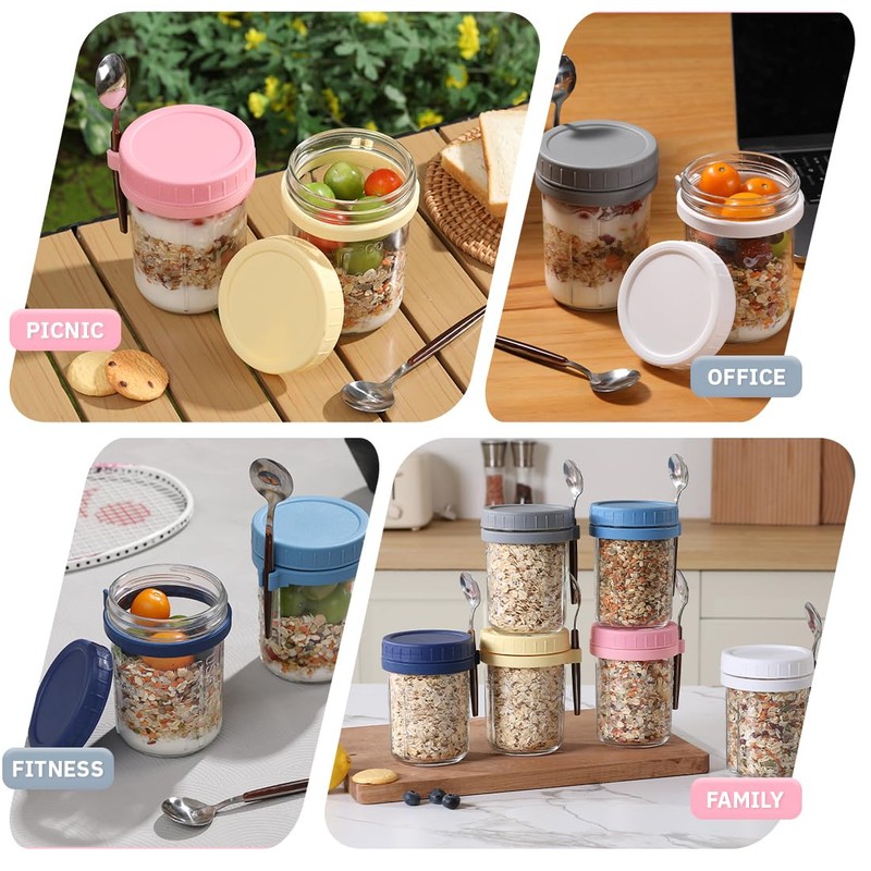 - Package included:6*16 OZ Oats Containers with Lids and Spoon.