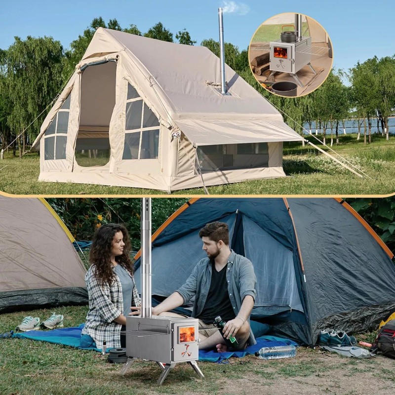 🔥【High Quality Stainless Steel】 - Our tent stove is made of high-quality stainless steel, it does not rust easily, and can be used in rain and snow. It's stronger than steel and less prone to deformation, making it an ideal material for wood stoves. The stainless steel material is strong, it has high thermal conductivity, and is very durable