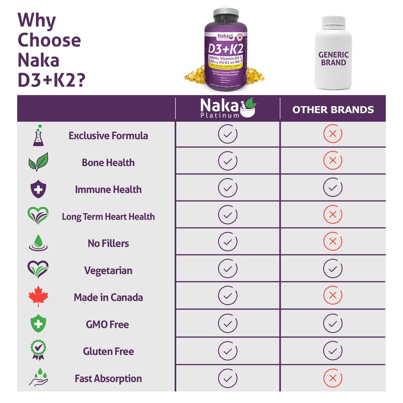NAKA Naka Platinum D3+K2 Super BONUS SIZE 330 Softgels (300 + 30 FREE) Organic Coconut Oil Base for Optimal Absorption.