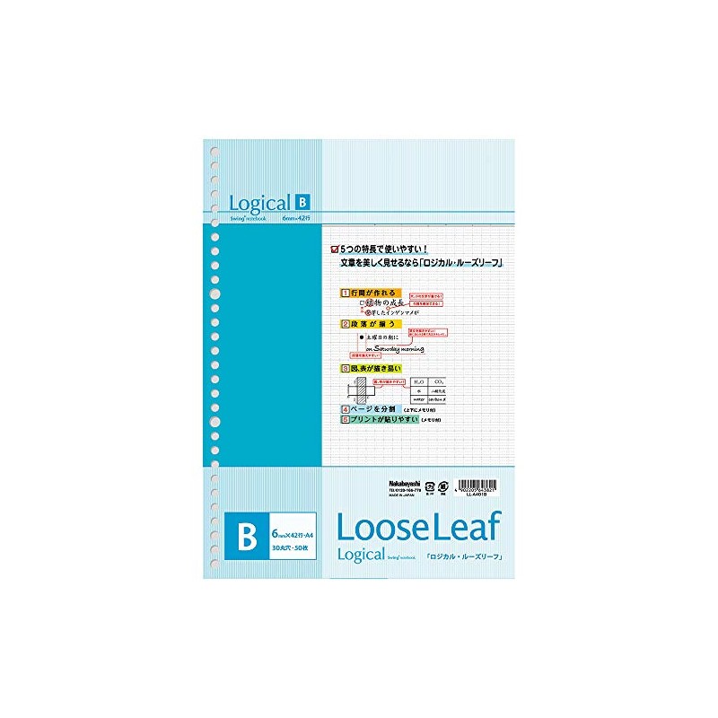 Nakabayashi LL-A401B Swing Logical Loose Leaf A4 B Ruled, 50 Sheets, White