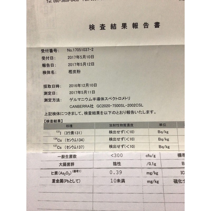 3.5 oz (100 g) of oak charcoal has been submitted to a health office in 2016.