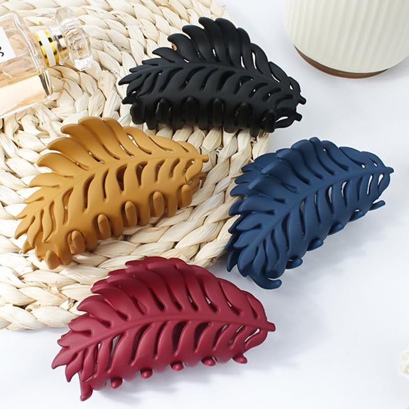 - このバンスクリップはミディアムサイズで、軽量なポリカーボネート樹脂を使用しており、耐久性と使いやすさを兼ね備えています。くすみカラーとマットな艶消し仕上げがシンプルでありながらも洗練された印象を与え、リーフ型のデザインが自然で優雅な雰囲気を演出します。髪をしっかりと固定しつつ、エレガントなスタイルを提供するアイテムです。