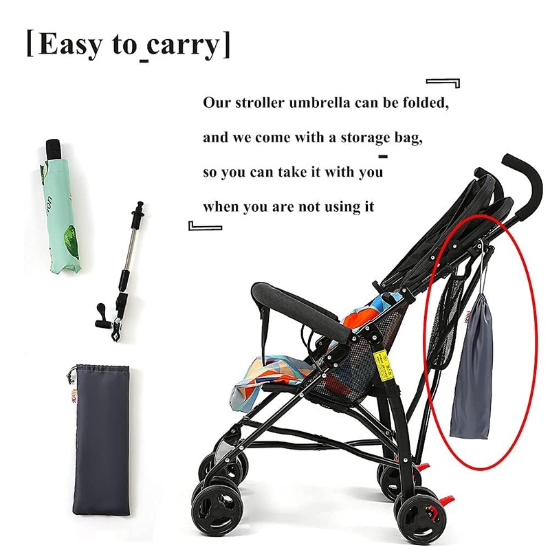 - Specifications: The opening diameter of the stroller umbrella is 95cm. It includes a removable clamp; We come with a storage bag; our stroller umbrella can be folded up and easy to carry when you don’t need it