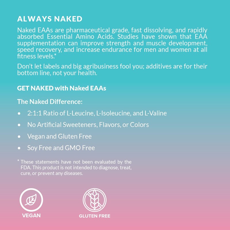 - PURE ESSENTIAL AMINO ACIDS: Strawberry Lemonade Naked EAAs is the highest pharmaceutical grade and fastest dissolving amino acids powder on the market. With pure ingredients, our flavored amino acid supplement has been designed to support your performance in the gym.