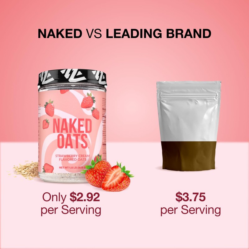 - READY IN SECONDS: Strawberry Cream Naked Oats is a protein powder with gluten free oats that has a crave worthy smell and taste. Enjoy as a high-protein breakfast or add water to use as a high protein shake with rolled oats for complex carbs.