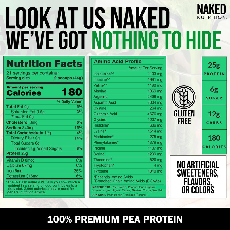 - CLEAN GAINS: To maintain a clean high-protein diet, use Naked Pea in pre and post workout shakes, smoothies and recipes for maximum recovery.