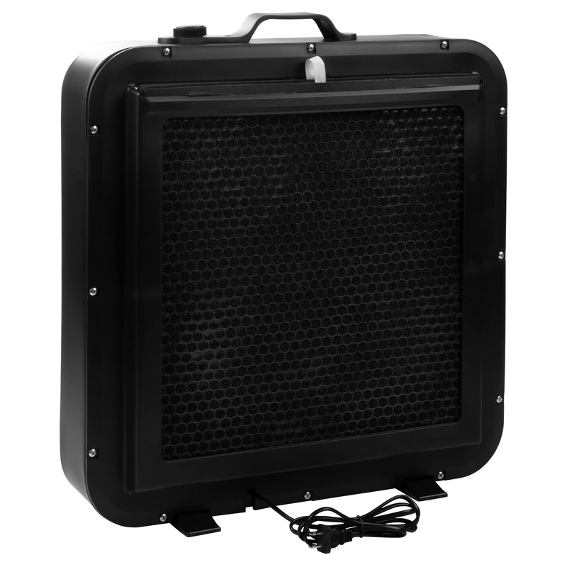 • Hepa/Honeycomb Activated Carbon Duo Filter - Two sided filter comes standard. Hepa finely pleated filter side excels at removing tiny droplets. Honeycomb activated carbon side excels at removing odors. Activated carbon layer consists of numerous "Honeycomb" cells containing activated carbon that is covered by a black fine mesh fabric.