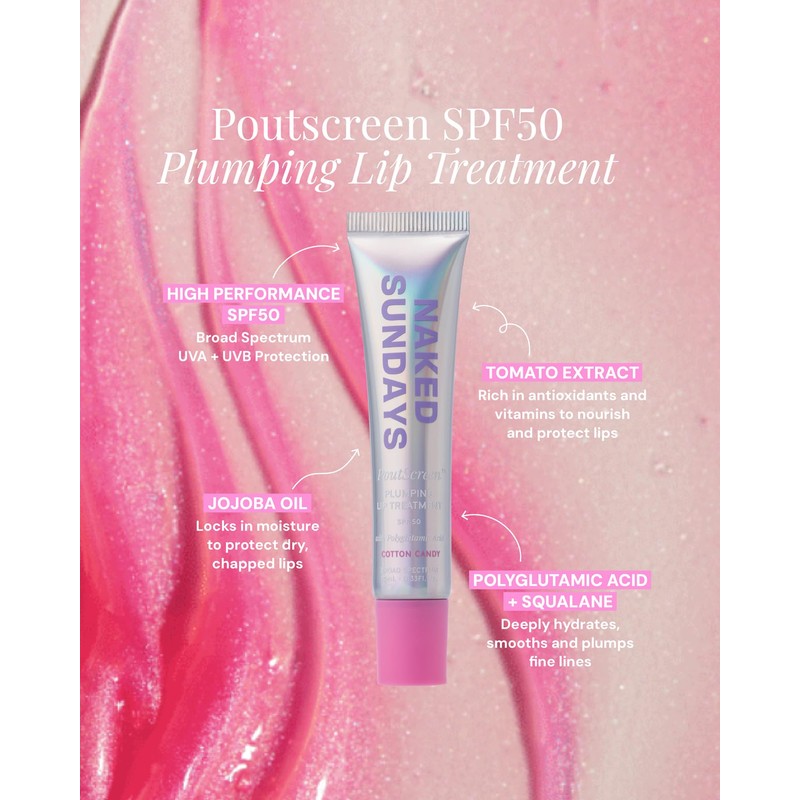 Naked Sundays PoutScreen™ SPF 50 Lip Balm – Hydrating Lip Treatment with Polyglutamic Acid for Moisture, Shine & Sun Protection | Vegan, Non-Sticky, Conditioning, High-Gloss Finish