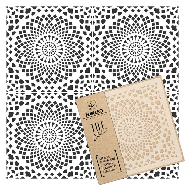 NAKLEO Alamo Tile Reusable Plastic Stencil - 25 x 25 cm - Traditional Circle Tip - Moroccan Geometric - Paving Stone Concrete Floor Wall Painting Template Wood