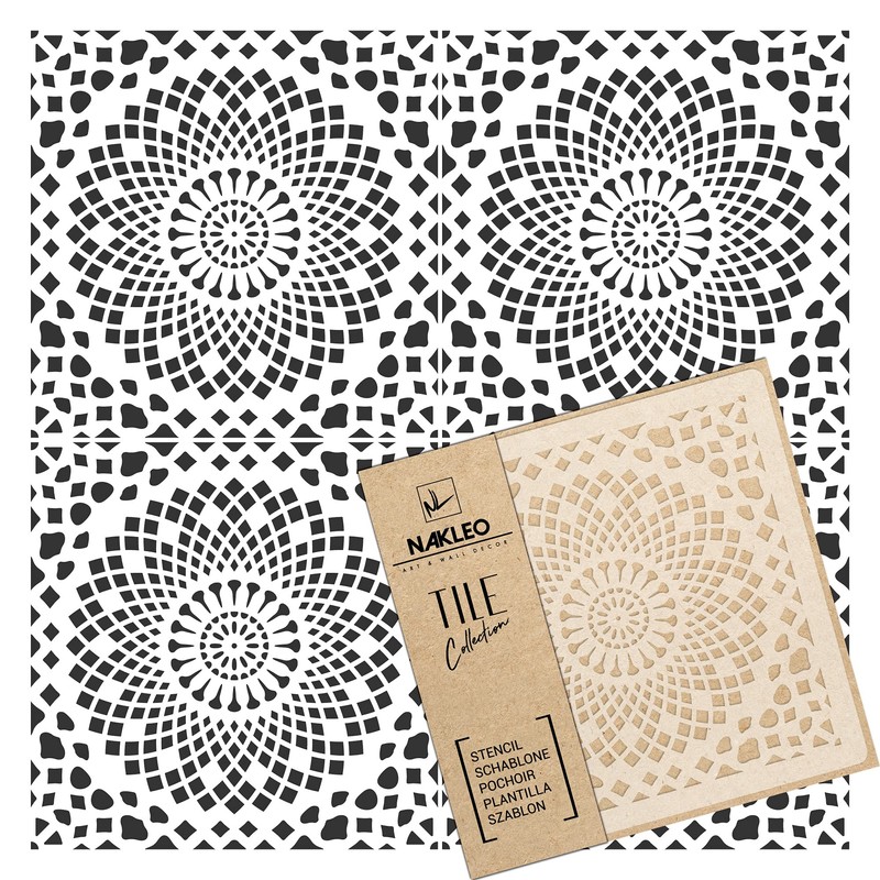 With the plastic stencil "Alamo" from the Nakleo Tile Collection series, which imitates tiles, you can create a unique and unusual interior. Motifs inspired by classic Spanish ornaments, Moroccan tradition, geometric minimalism or retro style are just some of the diverse patterns in this series. You can use them to breathe new life into your old tiles or paving stones, redecorate concrete or wooden floors and cover any other flat surface. This is much easier and cheaper than removing tiles, which always requires special tools and knowledge and takes more time. They are available in eight sizes and have been adapted to the most common dimensions of ceramic tiles, making it much easier to choose the right format.