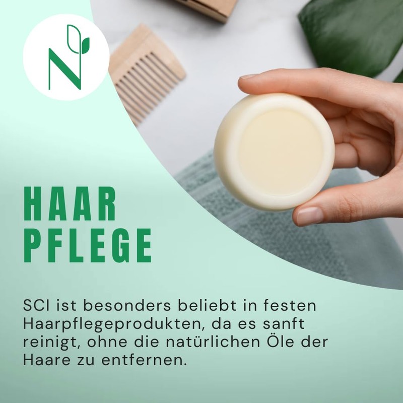 - Gentle cleansing: SCI, a mild surfactant, gently removes dirt and impurities from skin and hair without affecting the natural moisture barrier.