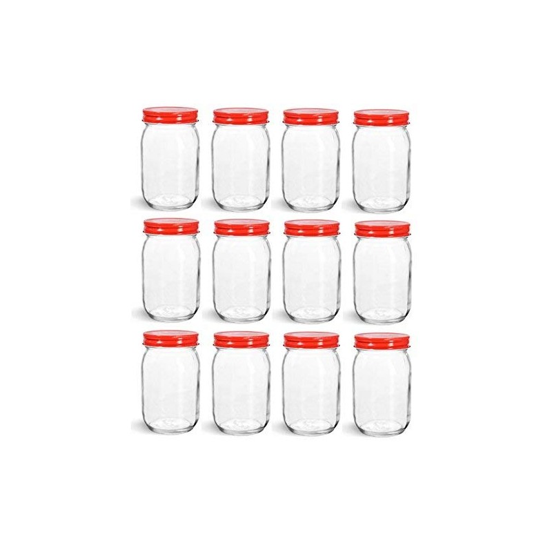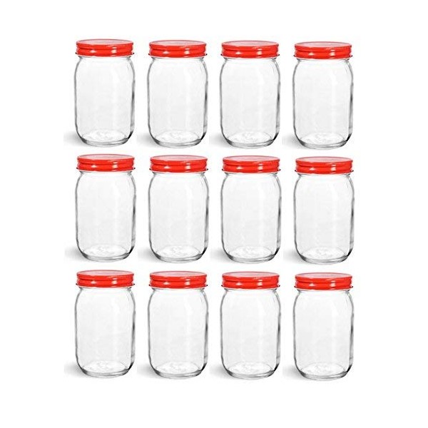 Nakpunar 12 pcs 16 oz Mason Jars with Red Lids - Made in USA - 1 Pint (16 oz, Red)