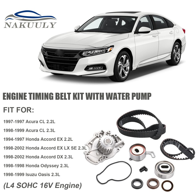 Nakuuly Timing Belt Kit with Water Pump Compatible with 1994-2002 Honda Accord, 1998 Odyssey, 1997-1999 Acura CL, 1998-1999 Isuzu Oasis 2.2L 2.3L L4 SOHC 16V Engine F22B1 F23A1 F23A4 F23A5 F23A7