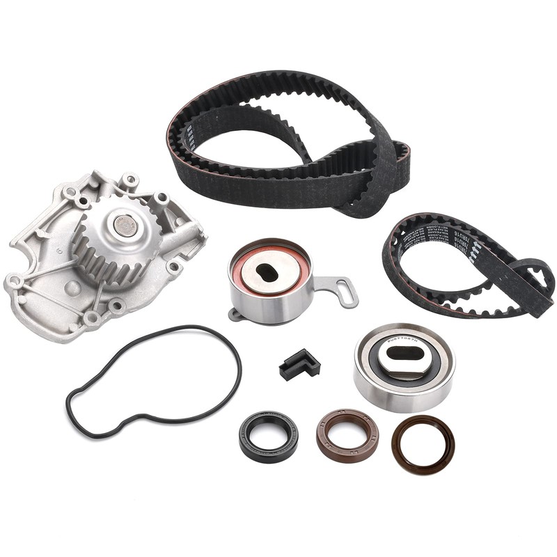 - Includes The Following New Parts: 1*Timing Belt(112 round teeth), 1*Balance Shaft Belt(70 teeth), 1*Water Pump with Gasket, 1*Timing Belt Tensioner, 1*Balance Shaft Tensioner, 1*Camshaft Seal, 1*Crankshaft Seal.