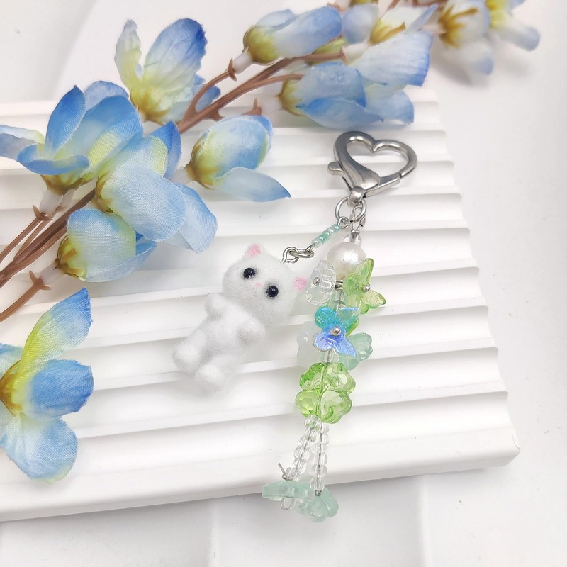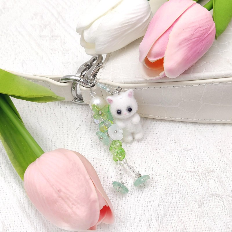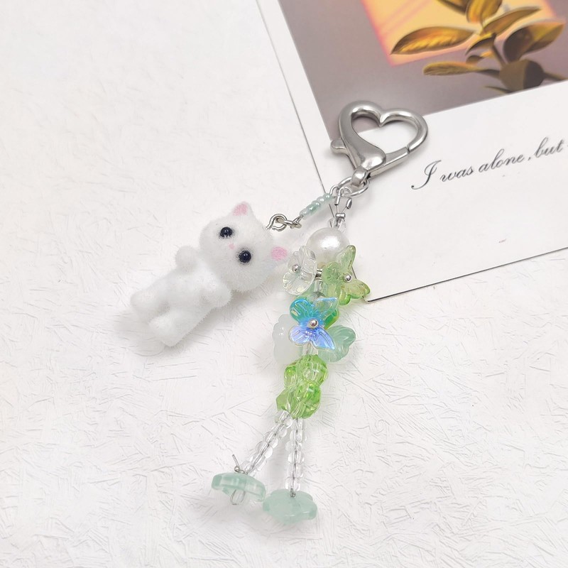 - 【Premium Material】: Our cute Keychain is mainly made of quality alloy,beads and flocking which is durable and not easy to wear,the keyring has lovely fuzzy cat pendant,embellished with delicate beads,in line with the elegant temperament of women.