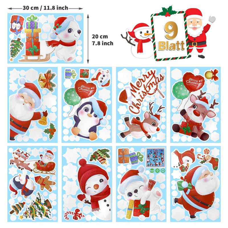 Naler Christmas Window Clings 168Pcs 9 Sheets Christmas Window Stickers Cute ...