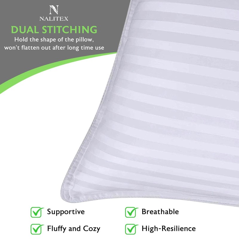 - 〖 DURABLE STITCHING AND MACHINE WASHABLE 〗 Nalitex queen pillows are stitched with extreme durability. Nalitex sleeping pillows are machine washable and dryer safe and come out looking like new; Stain and fade resistant, will retain their shape, and look and feel great.