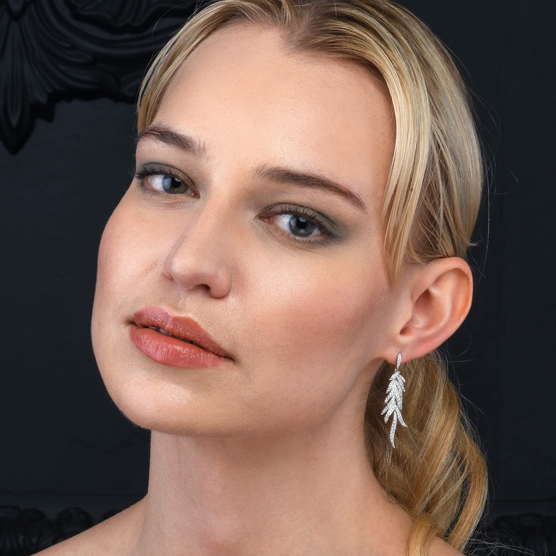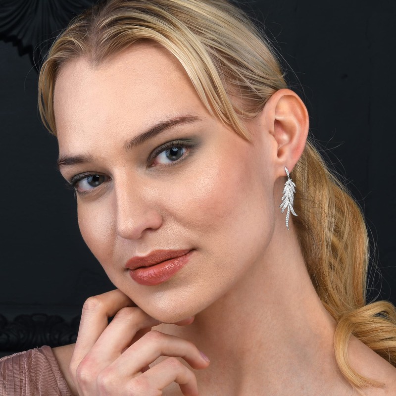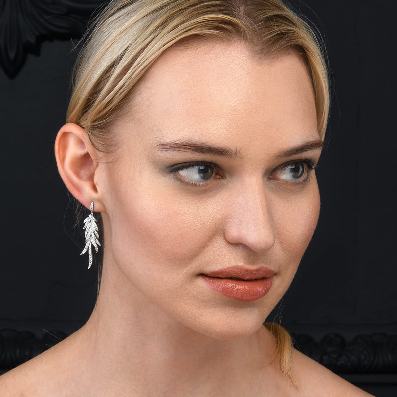 - Stylish 925 sterling silver earrings for women and teen girls with dangling leaf motifs. Stunning statement silver earrings set with sparkling cubic zirconia stones for women.